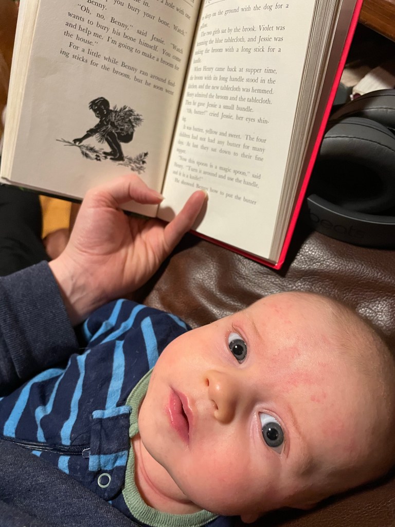 But I’ve been reading him full chapter books since I was twenty weeks pregnant, and I don’t intend to stop now. This month, we’re reading one of my oldest and dearest favorites. (I’ll let you guess the title.) He may not understand the story yet, but it’s snuggle time and connection time and, one day, hopefully, he will be just as obsessed with the books as I am.
