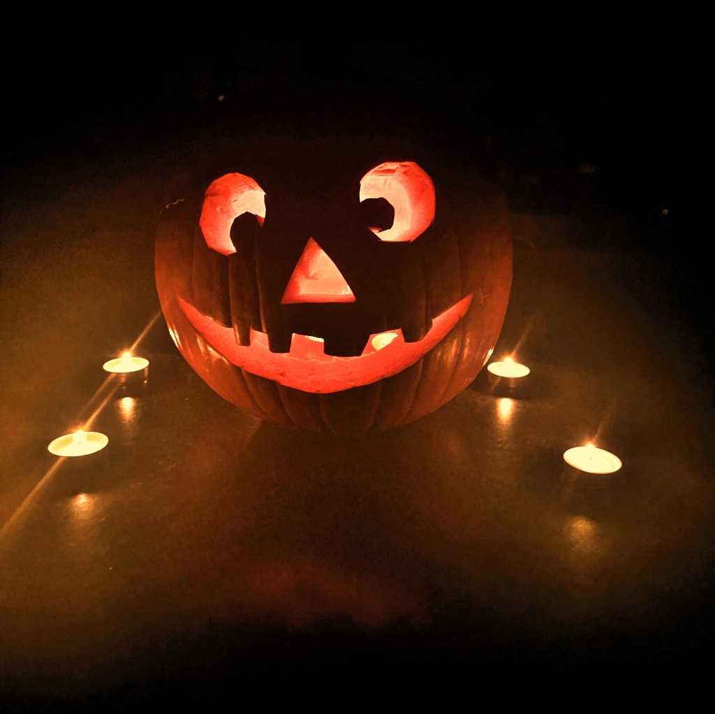 In the meantime, Happy Halloween! I haven’t had as much of a chance to celebrate this year, what with the book launch and all, but I’ve managed a pumpkin patch with my writers group, and today my sister and her boyfriend came over for pumpkin carving, popcorn, hot chocolate, and a creepy Halloween game that lasted about three hours.